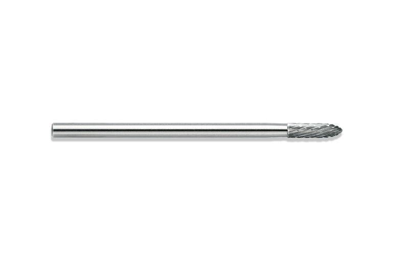 Твердосплавная фреза со средней перекрёстной насечкой для точной и щадящей обработки микотических ногтей вплоть до ногтевых валиков.