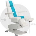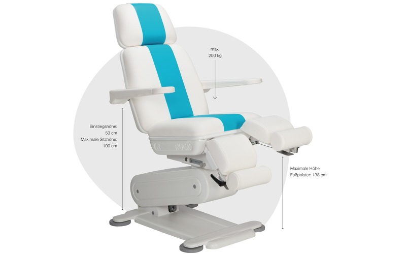 Кресло Stella 3S оснащенo двумя мощными электромоторами, которые легко справляются с весом до 200 кг, что подтверждено сертификатом TÜV. Плавная регулировка позиций кресла, вплоть до горизонтального положения осуществляется при помощи эргономичного блока ножных педалей, защищенных от попадания влаги и пыли. Минимальная «посадочная» высота сиденья составляет 53 см от уровня пола и является наиболее оптимальной для пожилых и невысоких людей. Опоры для ног с независимой пневматической регулировкой угла наклона плавно перемещаются и фиксируются в любой точке одной рукой. Они изготовлены из устойчивого к механическим и химическим воздействиям пенополиуретана. Цилиндрические опоры для стоп выдвигаются на удобное для клиента расстояние и с помощью запатентованного механизма поворачиваются вокруг своей оси в горизонтальной плоскости, предоставляя мастеру еще больше пространства для работы. При максимальном подъеме кресла опоры для стоп могут достигать высоты 138 см, обеспечивая мастеру беспрецедентный доступ к любой области стопы как при работе сидя, так и стоя.