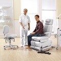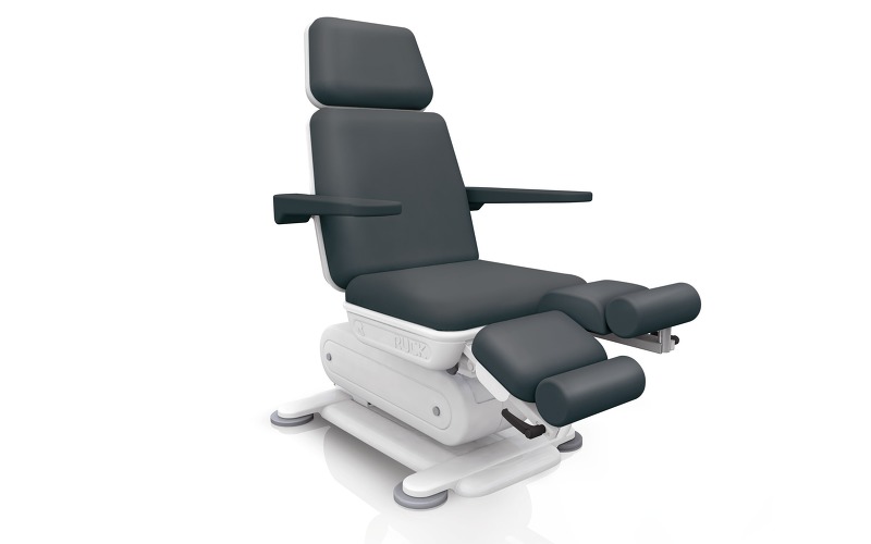 Матрац выполнен из мягкого пенополиуританового материала, который долговечен и прекрасно держит форму. Его прочная обивка из специальной искусственной кожи устойчива к воздействию дезинфицирующих средств. Плавные закругленные формы матраца, отсутствие каких либо выступающих кантов и острых углов – залог исключительного комфорта клиента при длительных процедурах. Этому же служит и специальная пружинная система, находящаяся под сидением кресла. Матрац сиденья и спинки крепится к раме при помощи винтов и поэтому легко снимается, что очень удобно при сервисном обслуживании или его замене.