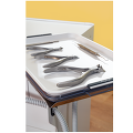 Прозрачная крышка может помещаться под поднос для экономии места во время процедуры. Подлежит дезинфекции средствами не содержащими спирта. Скрепляется с подносом по бокам при помощи силиконовых ремешков (арт. 2915701)