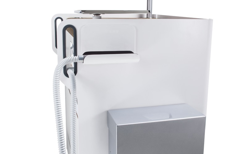 Магнитный держатель ручки педикюрного аппарата можно мгновенно закрепить на боковой стенке мебели RUCK® ROOM, расположив его на удобной высоте. Благодаря универсальной форме подходит для ручек педикюрных аппаратов PODOLOG® и сторонних производителей. Силиконовая вставка для защиты от скольжения и царапин легко снимается для удобной очистки и дезинфекции.