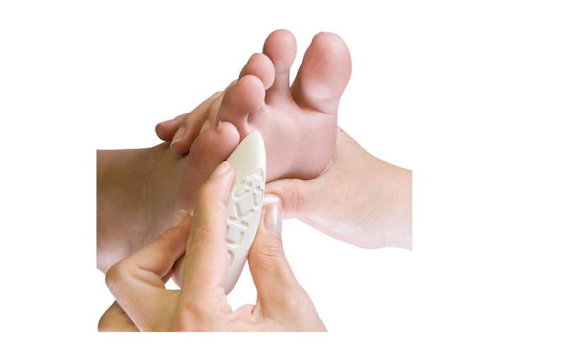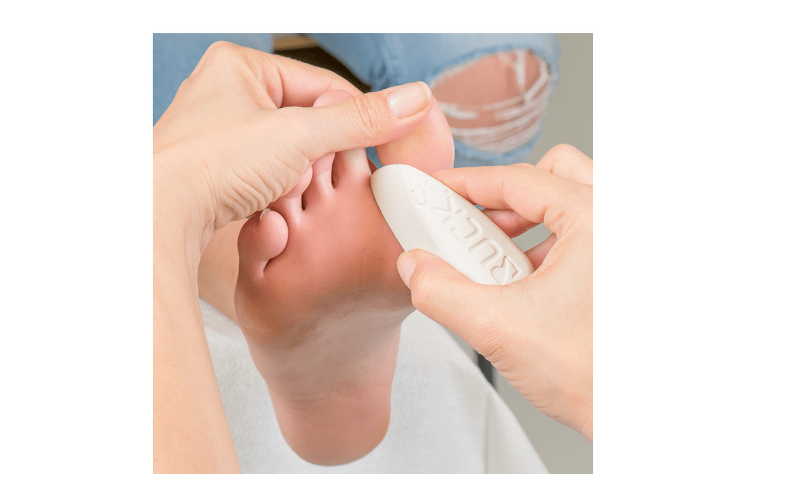После принятия теплой ножной ванны смочить пемзу водой и обработать проблемные зоны на поверхности стоп.