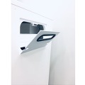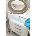 В верхней части шкафа имеется специально оборудованное место для педикюрного аппарата (28 х 14,5 х 40 см). Рядом расположен небольшой выдвижной ящик. Ниже подряд располагаются выдвижные ящики с удобными ручками. Специальный инерционный механизм обеспечивает им очень мягкое скольжение при движении. Достаточно одного небольшого усилия для того, чтобы полностью выдвинуть или закрыть ящик.