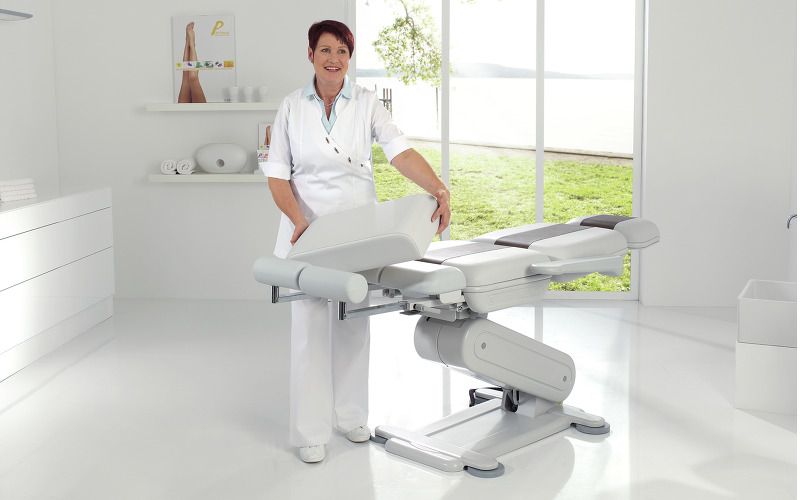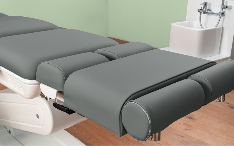 Специальная мягкая вставка очень быстро превращает опоры для голеней в сплошную поверхность – и кресло можно использовать для косметических процедур по уходу за лицом и телом.