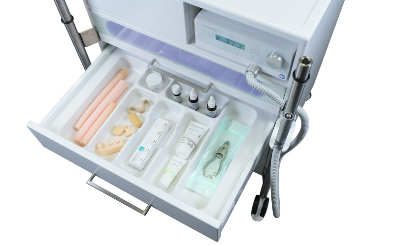 В стандартной комплектации педикюрный шкаф поставляется без органайзера для инструментов и аксессуаров. Органайзер имеет 6 отделений для классифицированного хранения инструментов и других принадлежностей, что в значительной мере облегчает работу и экономит время. При необходимости свободные выдвижные ящики шкафа могут быть укомплектованы аналогичными пластиковыми органайзерами.