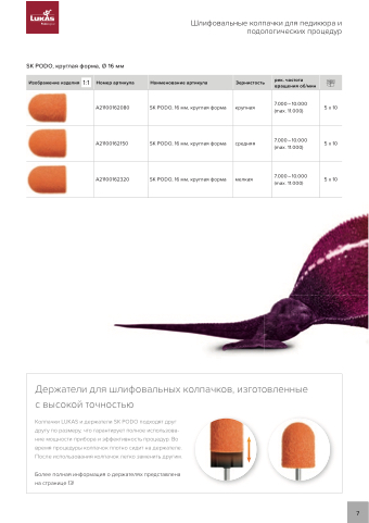Колпачки LUKAS и держатели SK PODO подходят друг другу по размеру, что гарантирует полное использова- ние мощности прибора и эффективность процедур. Во время процедуры колпачок плотно сидит на держателе. После использования колпачок легко заменить другим.