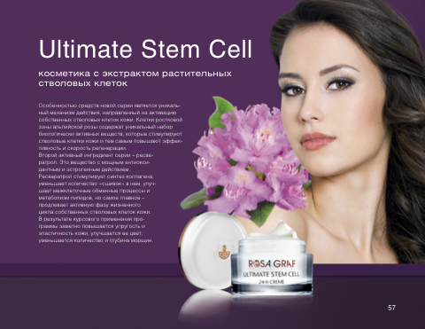 Особенностью средств новой серии является уникаль- ный механизм действия, направленный на активацию собственных стволовых клеток кожи. Клетки ростковой зоны альпийской розы содержат уникальный набор биологически активных веществ, которые стимулируют стволовые клетки кожи и тем самым повышают эффек- тивность и скорость регенерации.