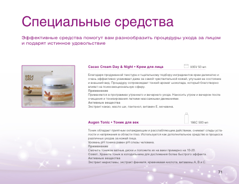 Благодаря продуманной текстуре и тщательному подбору ингредиентов крем деликатно и очень эффективно ухаживает даже за самой чувствительной кожей, улучшая ее состояние и внешний вид. Процедуру сопровождает тонкий аромат шоколада, который благотворно влияет на психоэмоциональную сферу.