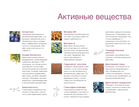 действиях, иммунологических процессах. Стимулируют син- тез коллагена, защищают кле- точные мембраны от окисления, способствуют по- вышению эластичности и тур- гора кожи.
